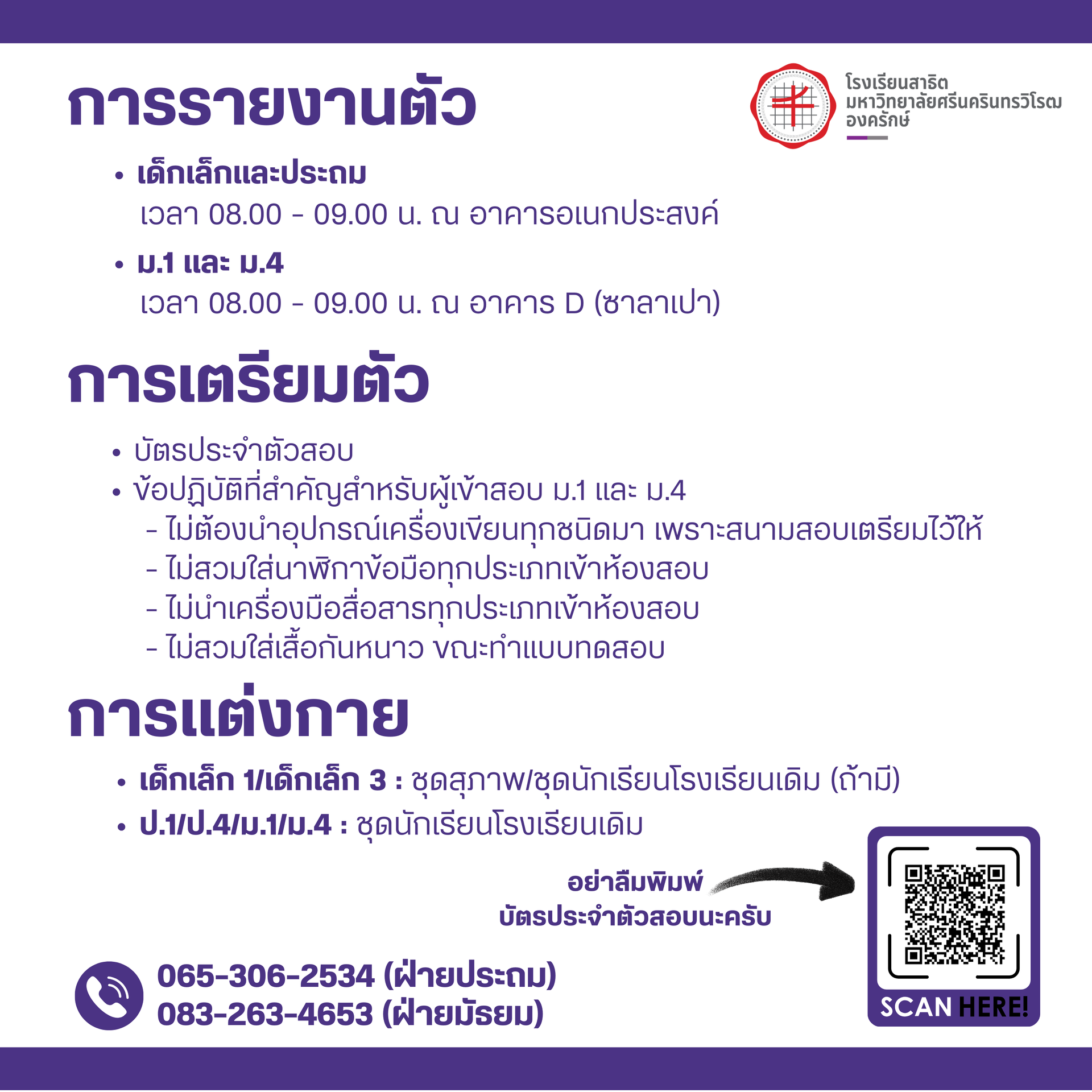 โครงการประเมินความพร้อมทางการเรียน ปีการศึกษา 2569 โรงเรียนสาธิต มศว องครักษ์
